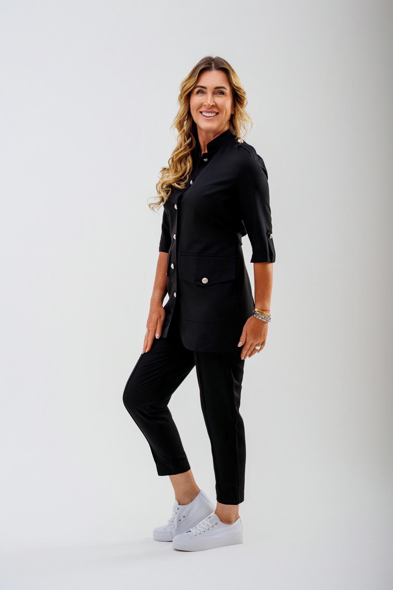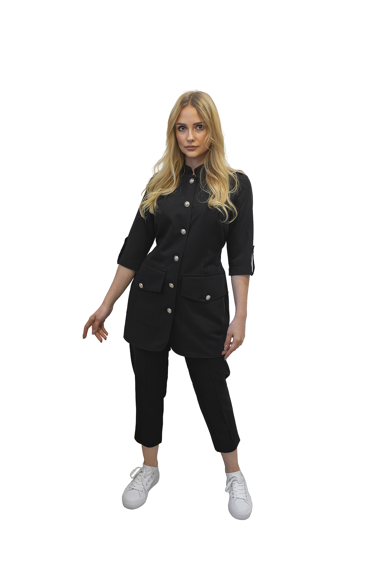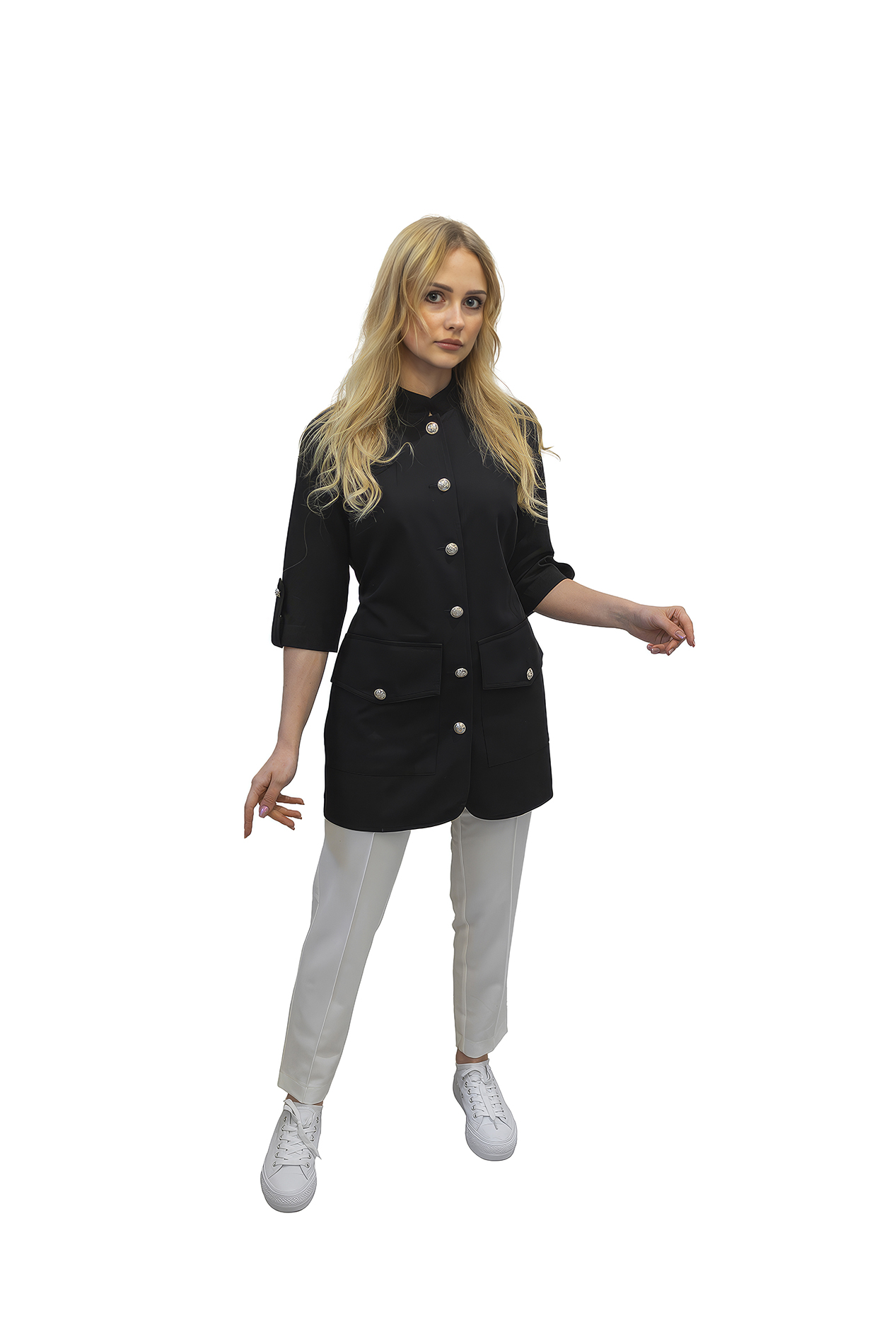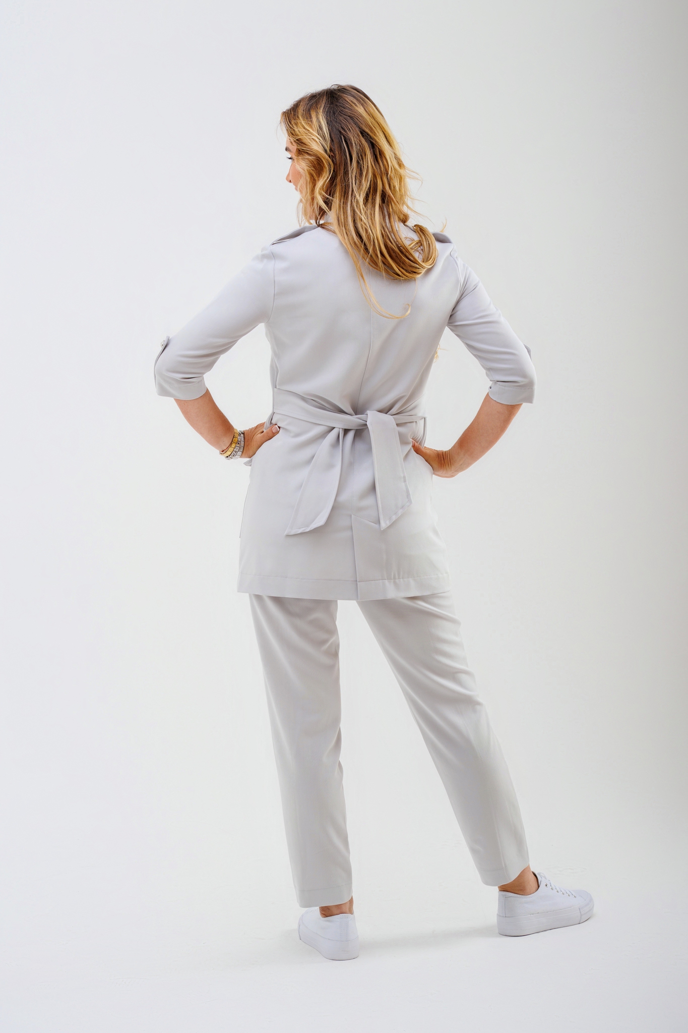 Krótki model Harper to połączenie sportowej elegancji z nowoczesnym stylem. Innowacyjna konstrukcja zapewnia elegancki wygląd oraz brak zagnieceń przez cały dzień użytkowania. Fason doskonale dopasowuje się do każdej sylwetki dzięki regulowanemu wiązaniu, które pozwala indywidualnie podkreślić talię. Całość dopełniają stylowe metalowe guziki, nadające produktowi ekskluzywnego charakteru.
